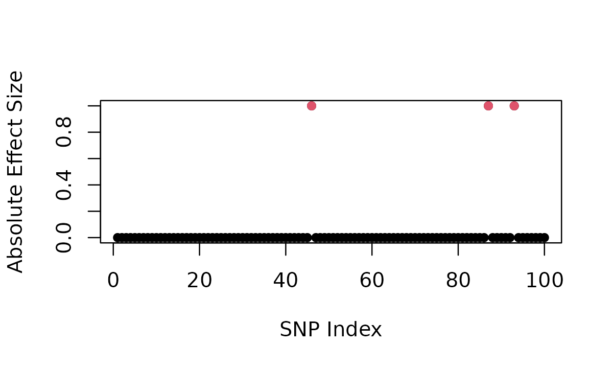 # Effect sizes (non-zero for causal variants)