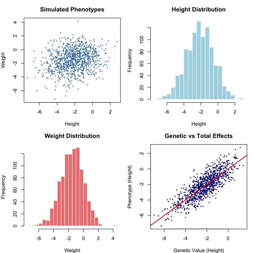 weight_effects[i] <- 0.1 * h_effect + sqrt(1 - 0.1^2) * rnorm(1, mean = 0, sd = ES_sd)