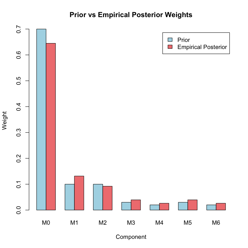 But how do we actually use this insight for analysis? This example demonstrates the complete workflow: we’ll first generate realistic data from a 7-component mixture representing different biological mechanisms, then show how Bayesian analysis with fixed mixture priors can flexibly classify variants and estimate effects - allowing us to analyze heterogeneous variants in a unified framework rather than assuming they all follow the same model.