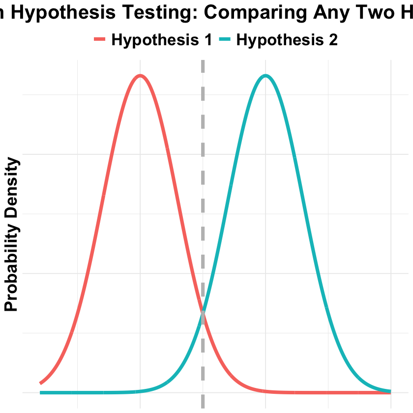 p_Bayesian_hypothesis_testing <- ggplot(bayes_data, aes(x = x, y = density, color = hypothesis)) +