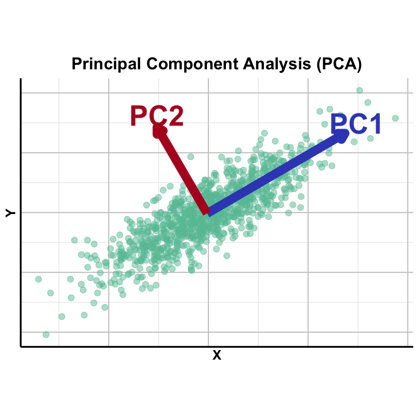 y <- rnorm(n, 0, 0.8) # Small variance for PC2 direction